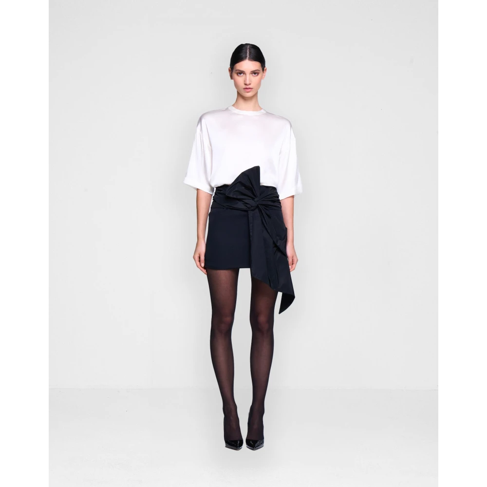 Minirok met knoopdetail. Zijdraperien en strakke pasvorm. SKU Cva 24041Mg Samenstelling 12% Elastan 88% Polyester Gemaakt IN Itali