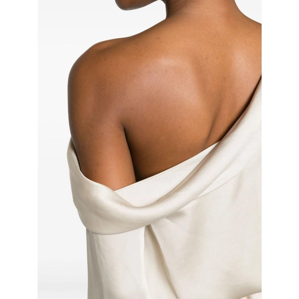 Upgrade je garderobe met deze prachtige Simkhai blouse. Gemaakt van hoogglans satijn, heeft het een romantisch cold shoulder design en geknoopte manchetten voor een vleugje elegantie. Gemaakt van 89% Acetaat en 11% Polyethyleen