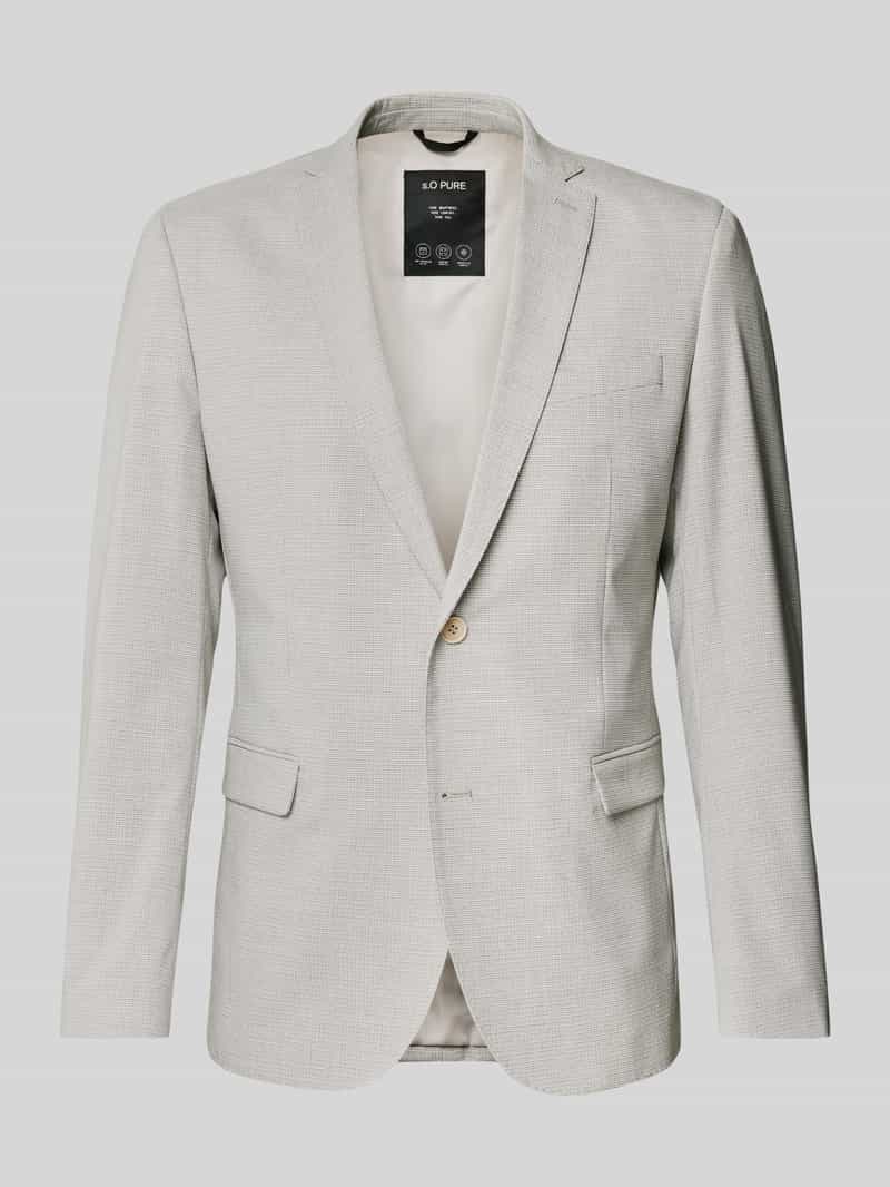 Herencolbert van s. Oliver BLACK LABEL. Look: mlee. Pasvorm: Regular fit. Motief: Nano-ruitjes. Kraagmodel: Reverskraag. Knoopsluiting: enkele knopenrij. Sluiting: Knoopsluiting met twee knopen. Mouwvorm: lange mouwen. Mouwboord: Manchet. Gelegenheid: Bruiloft, bruiloftsgast, zakelijk, feestelijk. Zakken: Klepzakken. Materiaalverwerking: fijne geweven structuur. Ruglengte bij maat 50: 77 cm. Borstomvang bij maat 50: 58 cm. Schouderbreedte bij maat 50: 43 cm. Mouwlengte bij maat 50: 63 cm