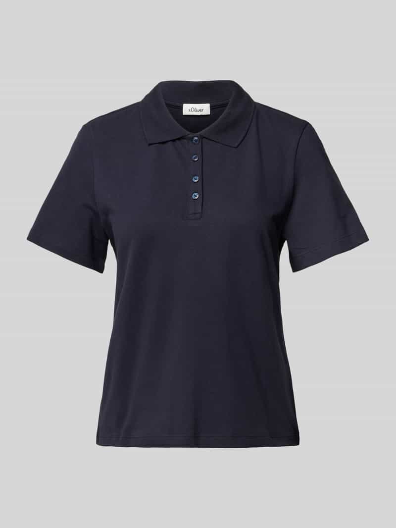 Poloshirt van s.Oliver RED LABEL voor dames. Look: effen. Pasvorm: Regular fit . Kraagmodel: Polokraag. Sluiting: korte knoopsluiting. Mouwvorm: korte mouwen. Materiaalverwerking: Piqu. Materiaal: Katoenmix. Ruglengte bij maat 36: 55 cm. Borstomvang bij maat 36: 47 cm