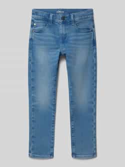 Kinderjeans van s.Oliver Casual. Look: mlee. Pasvorm: Regular fit . Pasvorm volgens fabrikant: Medium rise, straight leg. Applicatie: platte studs. Details: Riemlussen. Sluiting: Schuifhaakje en blinde ritssluiting. Band: met verstelbare breedte aan de binnenkant. Zakken: 5-pocketdesign. Materiaalverwerking: Denim. Materiaal: Katoenmix. Bandbreedte bij maat 116: 26 cm. Binnenbeenlengte bij maat 116: 49 cm