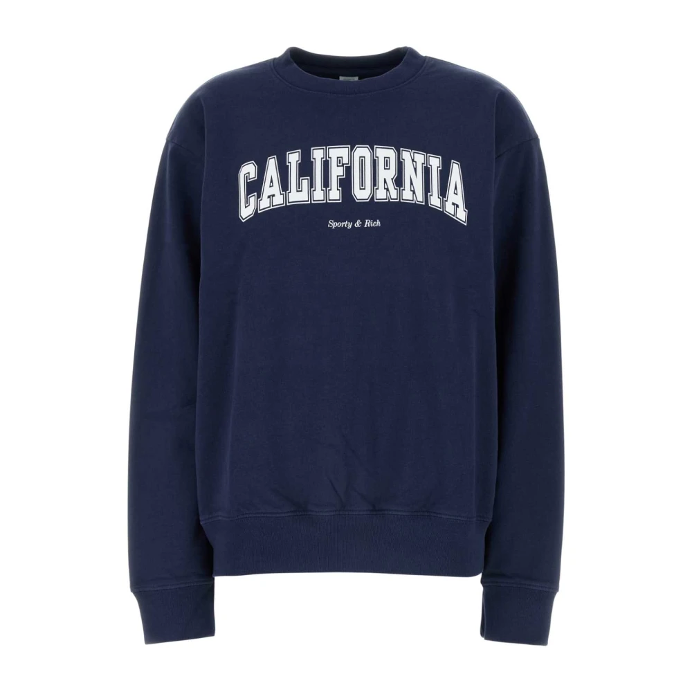 Upgrade je casual look met deze navy blauwe katoenen hoodie van Sporty & Rich. Met een nonchalante capuchon, logo print op de voorkant en een voorzak is deze hoodie perfect voor een relaxte maar stijlvolle outfit. Houd er rekening mee dat dit uniseks item is ingedeeld in standaard herenmaten.