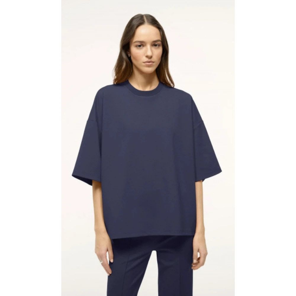 Upgrade je reisoutfit met de Staud Capsule Top, een oversized crewneck shirt van ponte-stof met een ribhalsafwerking. Combineer het met onze Knack Pant voor een stijlvolle en comfortabele look.