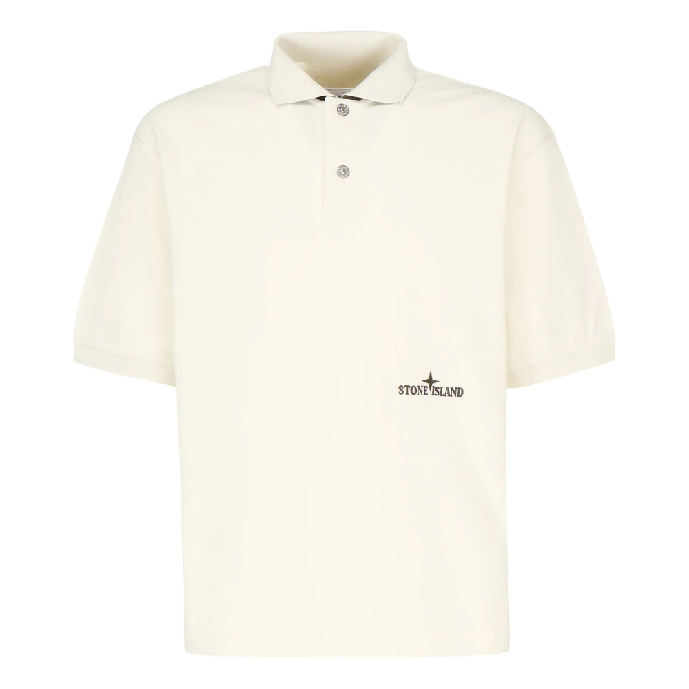 Witte Stone Island katoenen sweatshirt voor mannen met ronde hals en contrasterende kleur logo-patch op de mouw. Elastische geribbelde boorden. Model is 190 cm lang en draagt maat L.