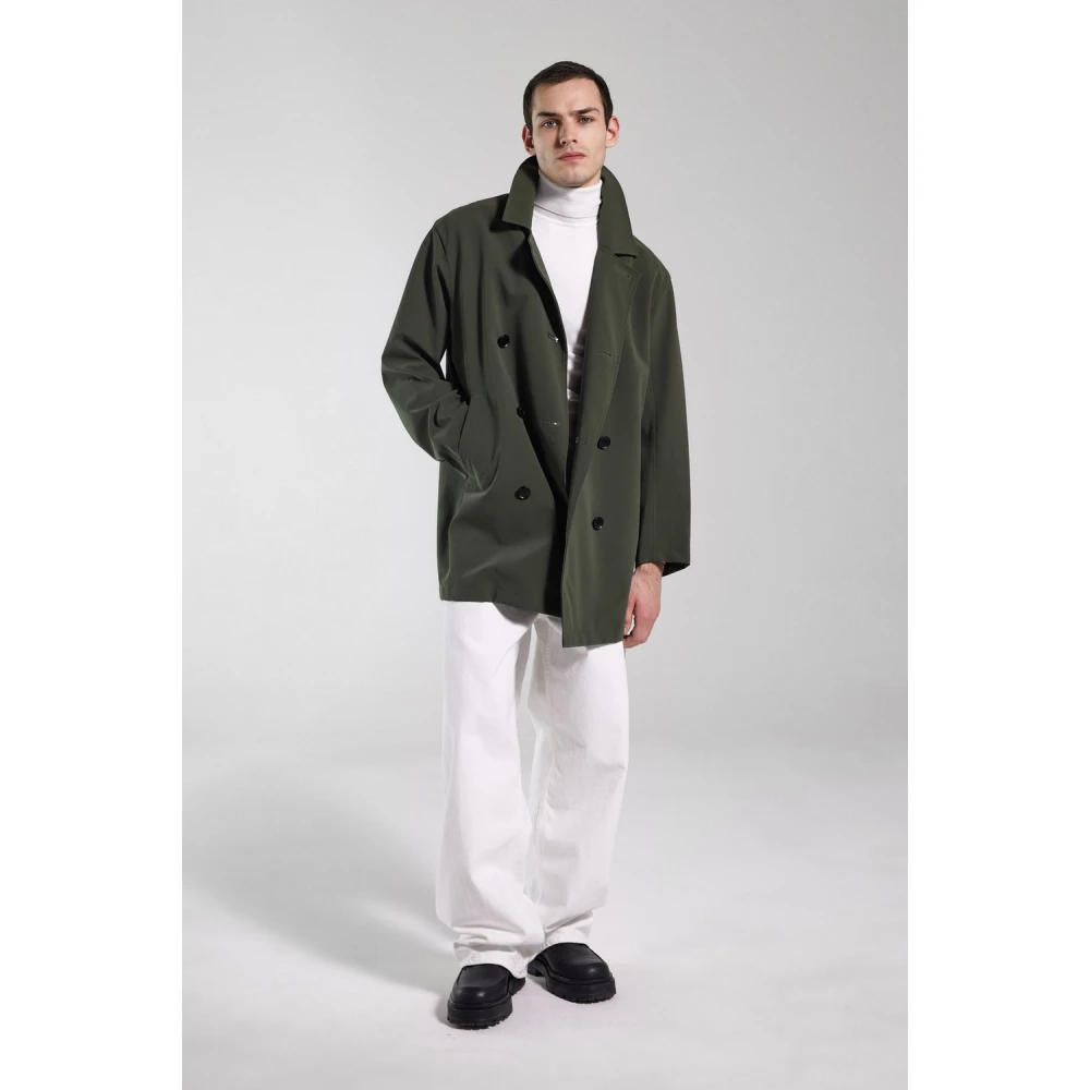 Atvidaberg is een klassiek gesneden double-breasted regenjas voor mannen. Blijf stijlvol en droog in dit tijdloze stuk gemaakt van licht en luchtig waterdicht materiaal met een matte afwerking. Op maat gemaakt met dubbel gelaste naden, het is volledig bestand tegen vocht, waardoor deze regenjas met regular fit de perfecte nette jas is voor onvoorspelbaar lenteweer.