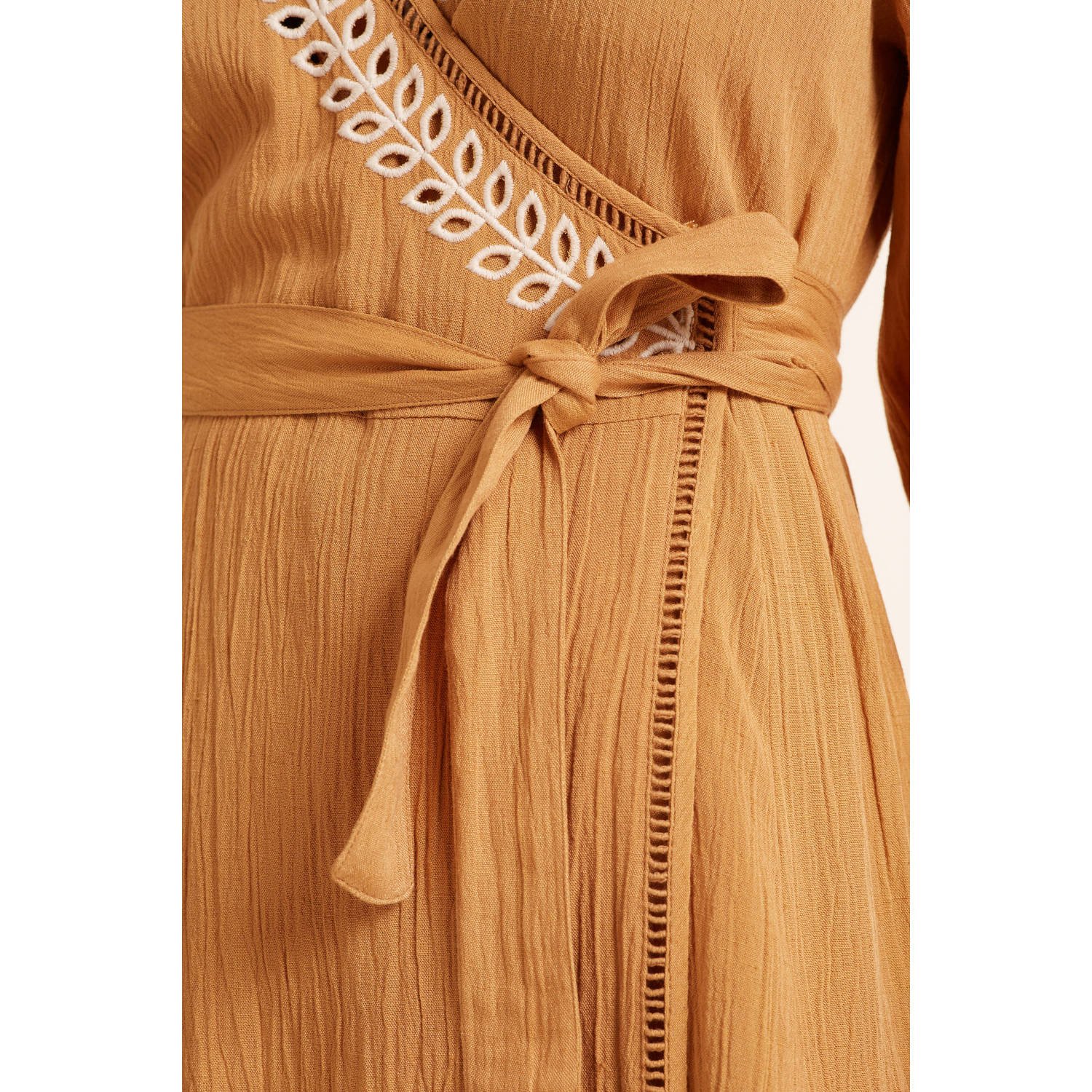 Deze damesjurk van Summum is gemaakt van een linnenmix en heeft een all over print. Het model beschikt over een striksluiting. De jurk heeft verder een V-hals en lange mouwen.details van deze jurk:borduurselssplitten