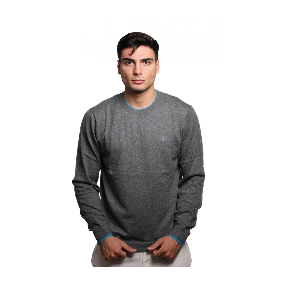 Upgrade je stijl met deze Sun 68 ronde hals trui voor heren. Met lange mouwen, contrasterende zoom, manchetten, halslijn en logo-details. Maat M getoond in de foto. Verkrijgbaar in Grijs en Lichtblauw. Gemaakt van 100% polyester