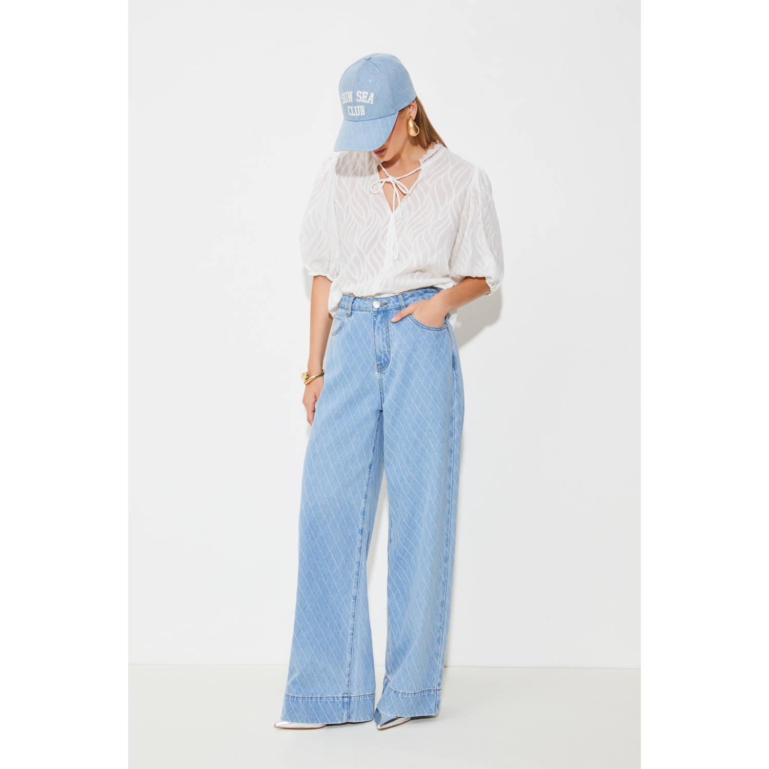 De Suncoo jeans voor dames is uitgevoerd in lichtblauw denim en heeft een hoge taille. Deze wide leg jeans met 5-pocket heeft een rits- en knoopsluiting en riemlussen. Gemaakt van polyester, lyocell en katoen.