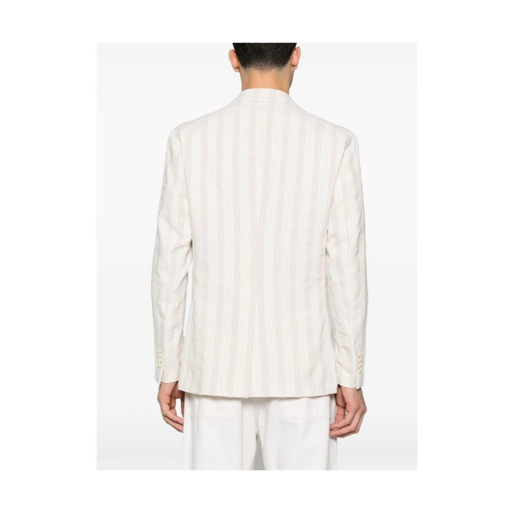 ecru double-breasted knoopsluiting borstzak met paspel lange mouwen twee zijzakken met opgestikte zakken