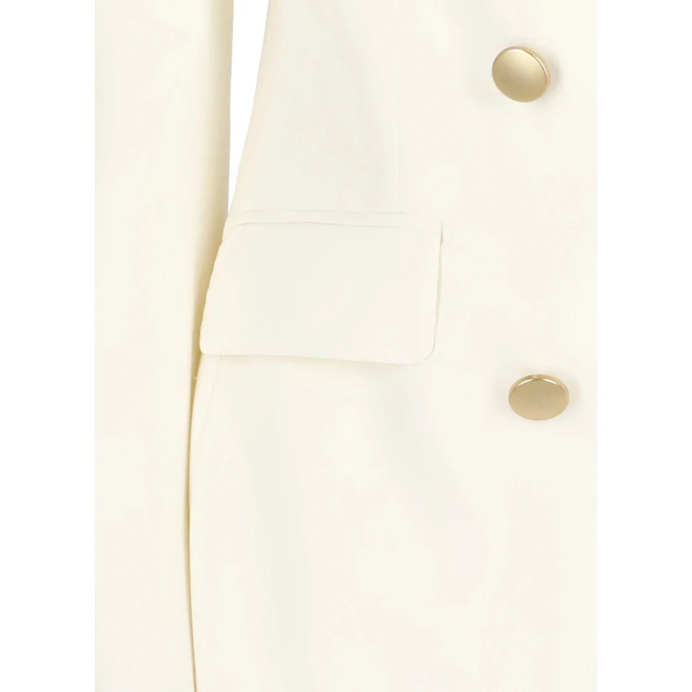 - Ivoor Tagliatore colbert van maagdelijke wolblend met dubbele rij knopen voor vrouwen - Piek reverskraag - Lange mouwen met knopen bij manchetten - Voorkant knoopsluiting - Twee voorflapzakken - Een borstzak - Een achterste split aan de zoom