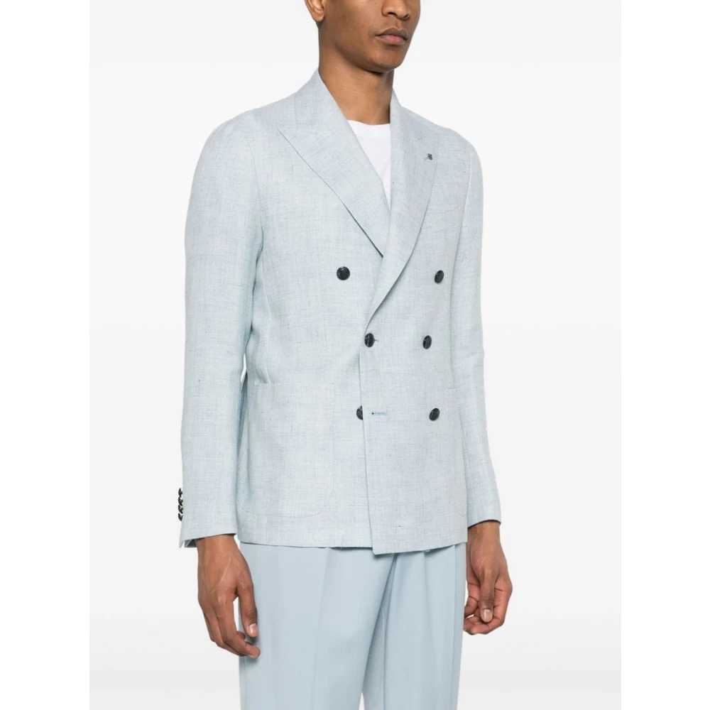 Upgrade je garderobe met het Montecarlo-jack van Tagliatore in lichtblauw. Deze double-breasted blazer heeft lange mouwen, perfect voor een verfijnde en stijlvolle look