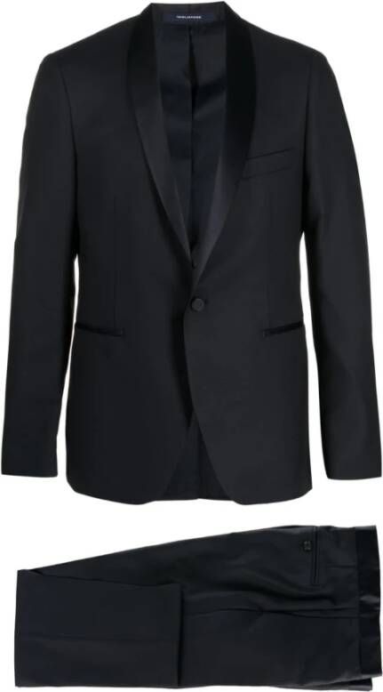 De Tagliatore double-breasted jurk met zijn aansluitende lijnen valt op door zijn verfijnde maatwerk. Het jasje met zes knopen heeft een klieke revers en een centrale split. - Maatwerk - Slim fit - Met knoopsluiting - Klieke revers - Zakken met klep en borstzak - Gevoerd