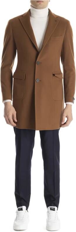 Gemaakt van een luxueuze mix van zuivere wol en kasjmier, heeft deze jas klassieke inkeping revers en een dubbele knoopsluiting. Met zijn lange mouwen en twee zijdelingse insteekzakken biedt hij zowel stijl als functionaliteit. Perfect voor de moderne man, is deze dij-lange jas een must-have toevoeging aan je collectie