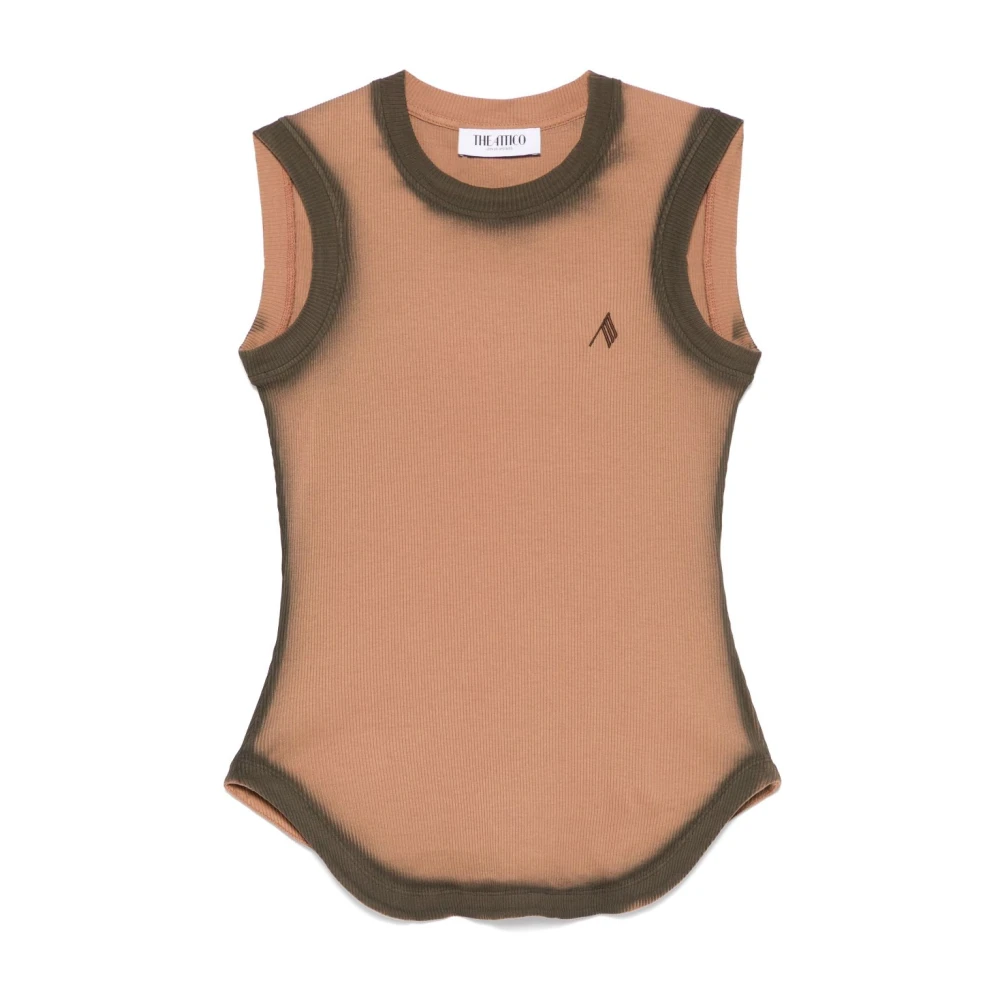 Upgrade je stijl met deze beige mouwloze top met ronde hals van The Attico, met contrasterend logo borduursel aan de voorkant. Gemaakt van katoen, is deze top perfect voor de moderne vrouw.