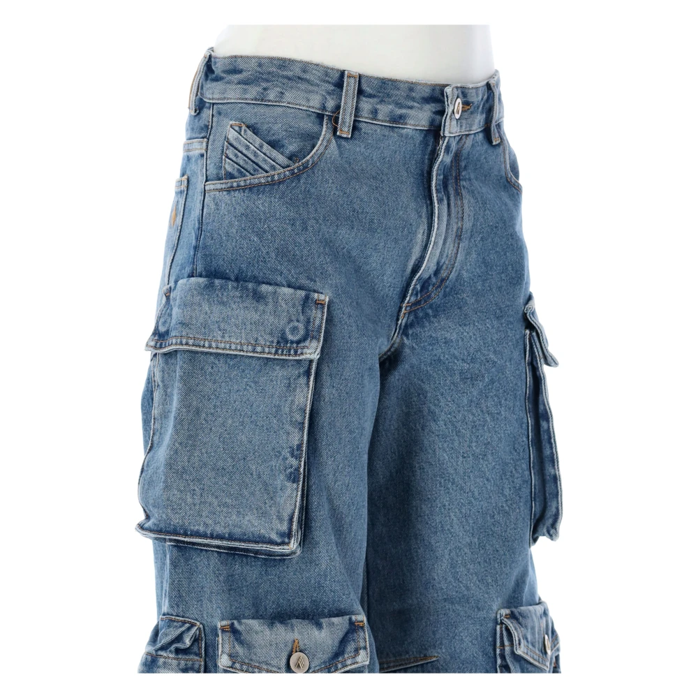 Upgrade je casual stijl met de Fern cargo loose-fit jeans van The Attico. Gemaakt van 100% katoen denim, deze jeans hebben een oversized pasvorm, een knoopsluiting aan de voorkant, meerdere cargozakken met kleppen, klassieke vijf-pocket-styling en verstelbare trekkoorden aan de zakken. Afgewerkt met een geborduurd logodetail op de achterzak. Model is 1, 72 m en draagt maat 26.