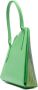 Groen, satijnen afwerking, verfraaid met bergkristallen, zilverkleurig materiaal, magneetsluiting, enkel handvat en vak aan binnenkant.