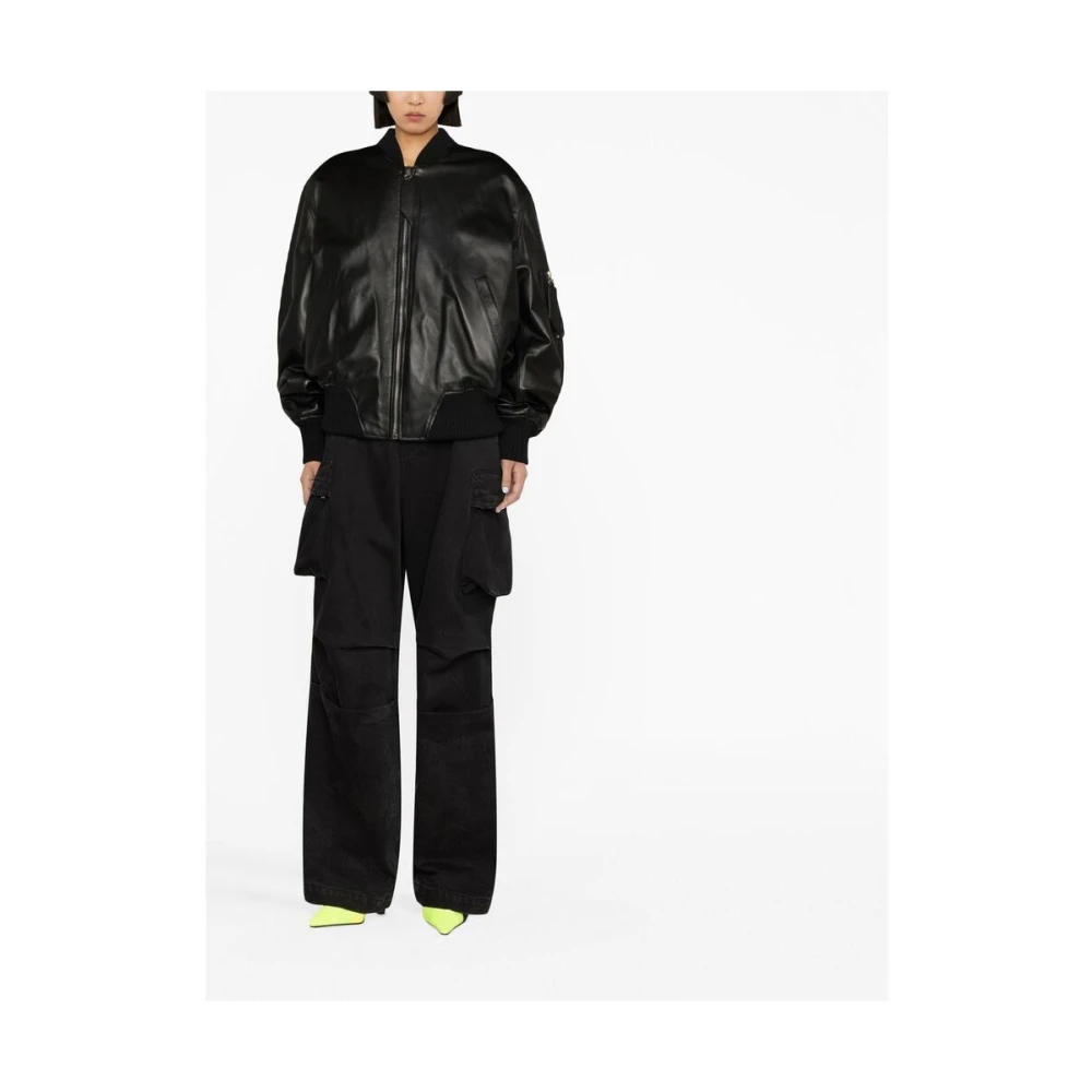 Upgrade je stijl met deze zwarte lammy bomberjack van The Attico. Voorzien van een geribbelde opstaande kraag, ritssluiting aan de voorkant, twee voorzakken, lange mouwen, mouwritszak en geribbelde afwerking, is deze jas een must-have voor de modebewuste vrouw.