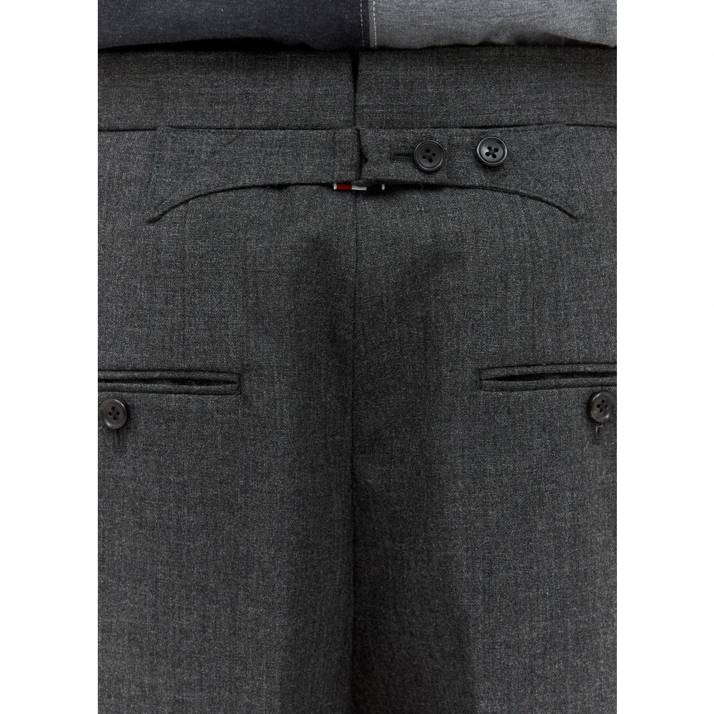 Upgrade je stijl met deze Thom Browne straight trousers. Gemaakt van 100% wol, deze op maat gemaakte broek heeft een geknoopte riem aan de achterkant, hoge taille, verborgen haak-en-oogsluiting met knoopsluiting, riemlussen, voorplooien, zijdelingse insteekzakken, verstelbare riem aan de achterkant, opgestikte zakken aan de achterkant en onafgewerkte zomen. Gemaakt in Japan. Alleen chemisch reinigen.