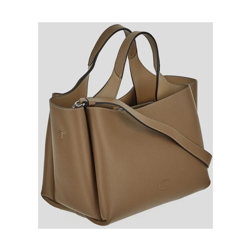 TOD'S Tijdloze leren tas met 2 compartimenten Beige Dames