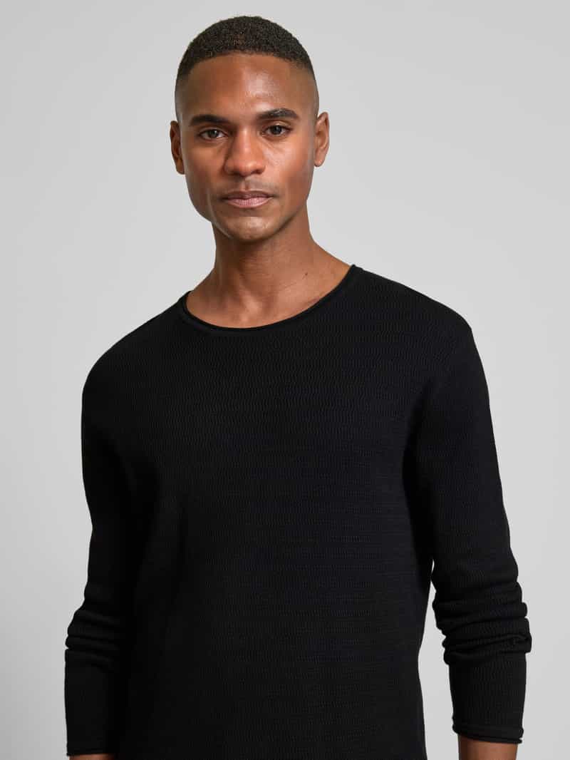 Herenpullover van TOM TAILOR DENIM. Look: effen. Pasvorm/model: Regular fit. Motief: structuur. Kraagmodel: Ronde hals. Hals: ronde hals. gerold. Mouwvorm: lange mouwen. Mouwboord: gerold. Rompzoom: gerold. Materiaalverwerking: Knitwear. Materiaal: puur katoen. Ruglengte bij maat M: 69 cm. Borstomvang bij maat M: 57 cm. Mouwlengte bij maat M: 61 cm