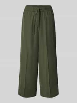 Wijde broek van Tom Tailor voor dames. Look: effen. Pasvorm: Loose fit. Details: Riemlussen. Sluiting: Schuifhaakje en blinde ritssluiting. Band: elastisch. Zakken: steekzakken opzij, gestileerde achterzakken. Materiaal: Mix van linnen en viscose. Bandwijdte bij maat 36/32: 35 cm. Binnenbeenlengte bij maat 36/32: 80 cm