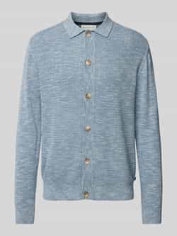 Gebreid herenjack van Tom Tailor. Look: Two-tone. Pasvorm: Regular fit. Sluiting: enkele knoopsluiting. Applicatie: Logopatch. Kraagmodel: Overhemdkraag. Materiaalverwerking: Knitwear. Materiaal: Katoenmix. Ruglengte bij maat M: 68 cm. Borstomvang bij maat M: 57 cm. Mouwlengte bij maat M: 67 cm