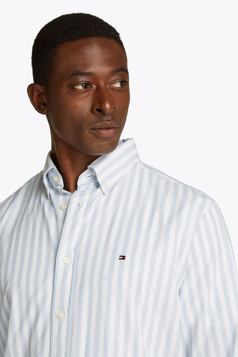 Op zoek naar hoge kwaliteit Heren Overhemden om je kledingkast mee op te vullen? Met deze Overhemd van Tommy Hilfiger heb je altijd een goed Overhemd in huis. De Tommy Hilfiger Poplin Overhemd Streep Licht Blauw is heel geschikt!Tommy Hilfiger Poplin Overhemd Streep Licht Blauw in de kleur Lichtblauw en Blauw met een pasvorm Regular-fit is gemaakt van Katoen met een Streep dessin