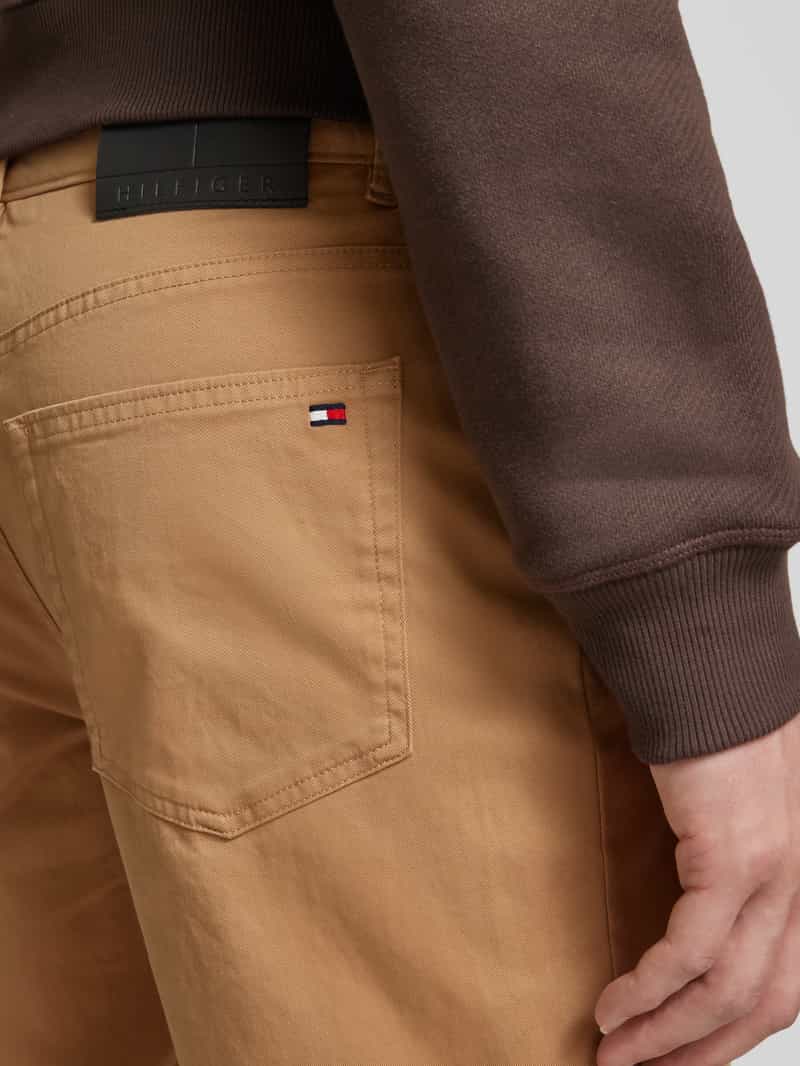 Herenchino van Tommy Hilfiger. Mix van katoen en elastaan. Regular fit. Model 'DENTON'. Riemlussen. 5-pocketdesign. Bandwijdte bij maat 32/32: 43 cm. Binnenbeenlengte bij maat 32/32: 81 cm