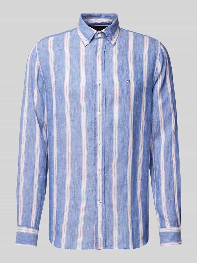Upgrade je casual stijl met dit prachtige Tommy Hilfiger Regular Fit vrijetijdsoverhemd met lange mouwen in het blauw met een gestreept ontwerp. Perfect voor elke informele gelegenheid, dit overhemd heeft een button-down kraag, enkele manchetten en geen borstzak. Gemaakt van linnen, biedt dit overhemd een comfortabele en ademende pasvorm. 100% linnen samenstelling. Tommy Hilfigers Regular Fit overhemd is een veelzijdige keuze voor de moderne man.