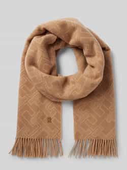 Sjaal van Tommy Hilfiger voor dames. Zuiver modal. Rechthoekig model. Model 'JACQUARD'. Franjes. Structuurpatroon. Breedte bij maat 1: 107 cm. Lengte bij maat 1: 77 cm
