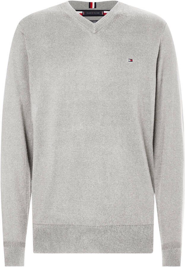 Iconische katoen-kasjmier trui van Tommy Hilfiger. Kleur: Grijs. Pasvorm: recht. Halslijn: V-hals. Mouwen: lang. Logo: geborduurd. Verzorging: Handwas. Maatvoering: Neem uw gebruikelijke maat. Materiaal: 92% katoen, 8% kasjmier.