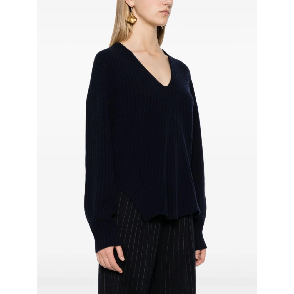 Upgrade je garderobe met deze indigo blauwe wol-kasjmier mix V-hals knitwear van Twinset. Met een geribbelde gebreide constructie, drop shoulder, lange mouwen, korte zijdelingse splitten en een rechte zoom, is dit stuk perfect voor de moderne vrouw.