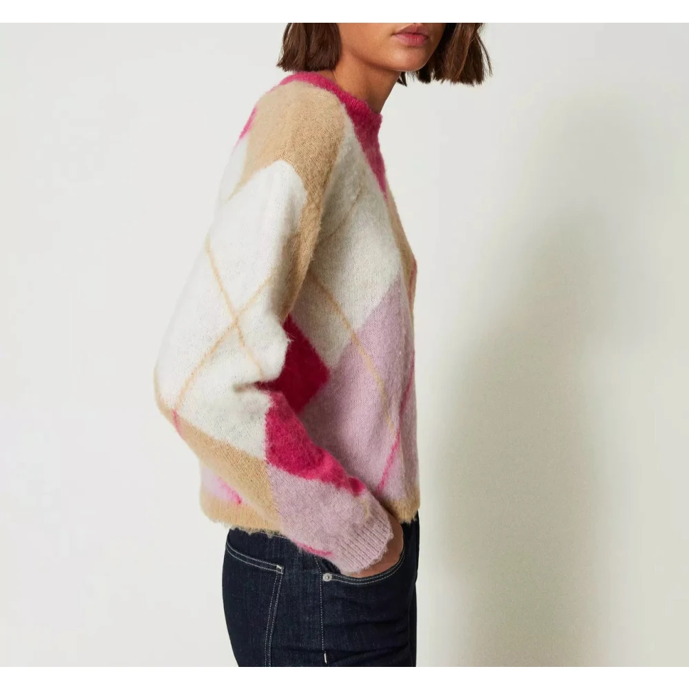 Verrijk je stijl met deze Twinset jacquard argyle gebreide trui gemaakt van een wolmix. Perfect voor de modebewuste vrouw.