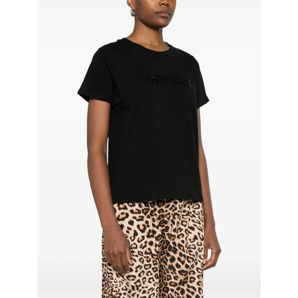 Upgrade je garderobe met deze Twinset zwarte t-shirt met ronde hals voor vrouwen, met korte mouwen.