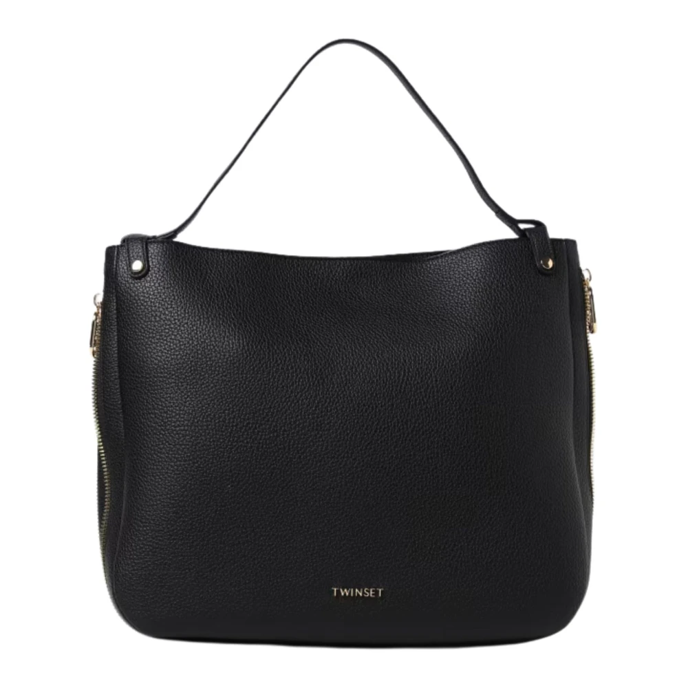 Upgrade je stijl met de Twinset 'Amie' handtas met bovenhandvat van glad kalfsleer met water- en druppelbestendige behandeling. Voorzien van een metalen Oval T-logo, klep- en magneetsluiting, dubbele draagbaarheid met een handvat of schouderband met afneembare ketting en leren schouderpad, gevoerd interieur. Productcode: 242Tb 7091 Zwart. Afmetingen: breedte 21 cm, hoogte 12 cm, diepte 4 cm. Handvat breedte 17 cm. Riemlengte 54 cm. Gemaakt van 100% runderleer. Materiaal 2: 100% runderleer. Voering: 100% polyester. Niet wassen, Niet bleken, Niet in de droger doen, Niet strijken, Niet chemisch reinigen.