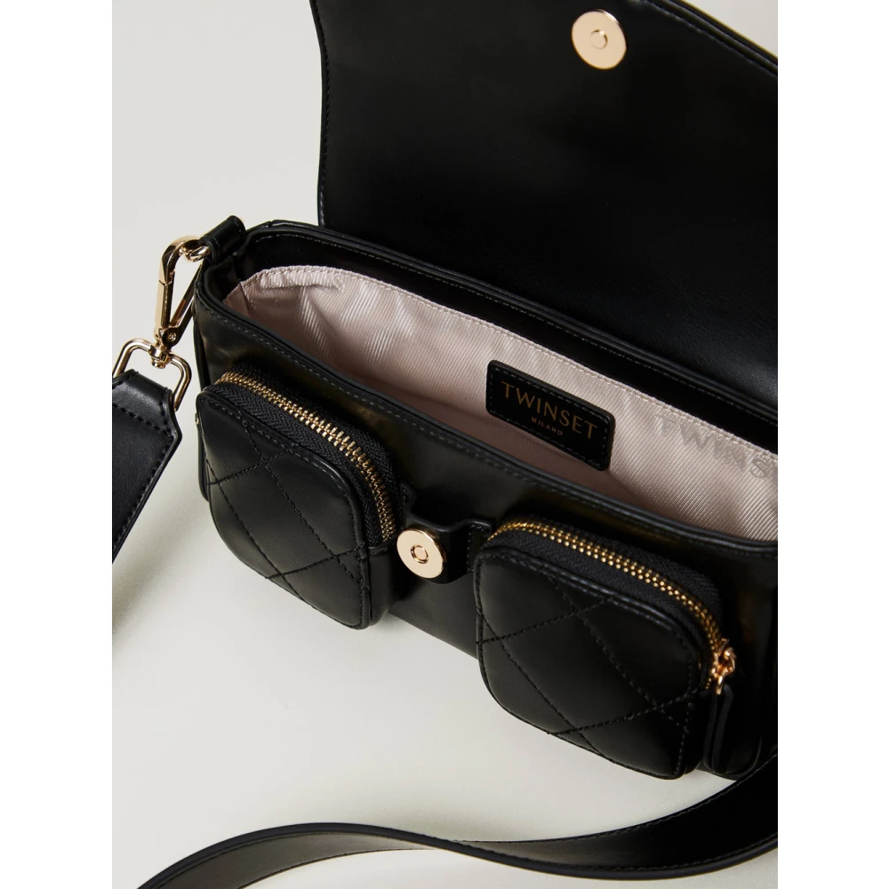 De zwarte schoudertas van Twinset voor vrouwen is de perfecte accessoire voor de moderne en verfijnde vrouw. Gemaakt van nappakalfsleer, heeft het voorvakken met ritsen en exclusieve ontwerpdetails zoals het logo op de metalen lus. Praktisch en elegant, ideaal voor elke gelegenheid. Kies de verfijning en elegantie van de Twinset-lijn om je look met stijl af te maken. Afmetingen 22 x 12, 5 x 7 cm Schoudertas in nappakalfsleereffect met doorgestikte voorvakken met ritsen. Heeft een klep- en magneetsluiting, gespsluiting, metalen lus met logo, afneembare crossbodyband, Ovaal T-logo aan de zijkant, gevoerd. Productcode: 242TD8183Zwart Breedte 22 cm, hoogte 12, 5 cm, diepte 7 cm. Bandlengte 51 cm. 100% polyurethaan. Voering: 100% polyester. Niet wassen, Niet bleken, Niet in de droger doen, Niet strijken, Niet chemisch reinigen.