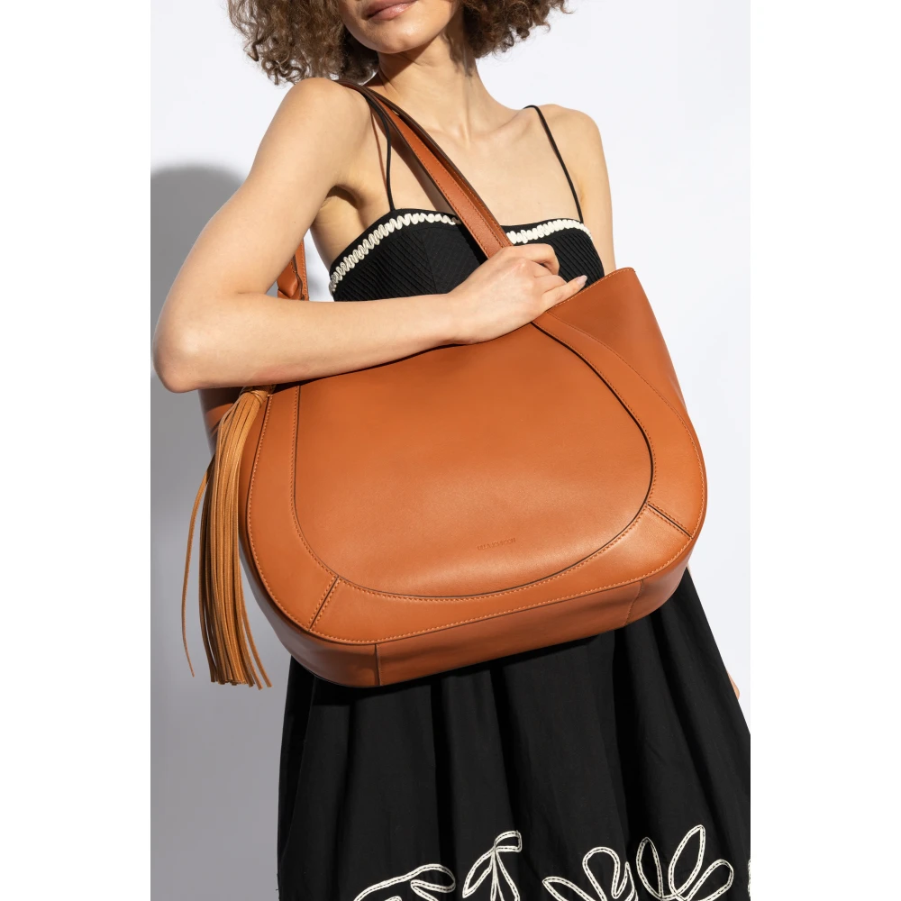 Betoverend in zijn eenvoud en tegelijkertijd opmerkelijk functioneel - de 'Albers East West' Shopper BAG VAN Ulla Johnson belichaamt eigentijdse elegantie. Vervaardigd van onberispelijk glad leer in een rijke, bruine tint, straalt het luxe en verfijning uit. Het minimalistische ontwerp, gekenmerkt door een rechthoekige vorm met zacht afgeronde onderkant, wordt versterkt door esthetische details zoals een lange, leren kwast en gevlochten handvatten, die niet alleen stijl maar ook duurzaamheid toevoegen. Het interieur van de tas onthult een ruim hoofdcompartiment, zorgvuldig georganiseerd met twee functionele insteekzakken, perfect voor het ordenen van essentile items. Het discreet geplaatste ontwerperslogo op het product garandeert authenticiteit en uitzonderlijke kwaliteit. Waarom Investeren IN DIT Product? * Hoogwaardig, glad leer zorgt voor duurzaamheid en een tijdloze uitstraling gedurende vele jaren. * Het minimalistische, maar verfijnde ontwerp maakt deze tas een perfecte aanvulling op elke outfit. * Praktisch gebruik gegarandeerd door het ruime compartiment en functionele zakken. * Unieke details, zoals de leren kwast en gevlochten handvatten, accentueren de individuele stijl. * Het ontwerperslogo van Ulla Johnson als een teken van authenticiteit en hoge kwaliteit. Hoogte: 30 cm Breedte: 38 cm Model's Afmetingen Hoogte: 176 cm Buste: 85 cm Taille: 60 cm Heupen: 89 cm