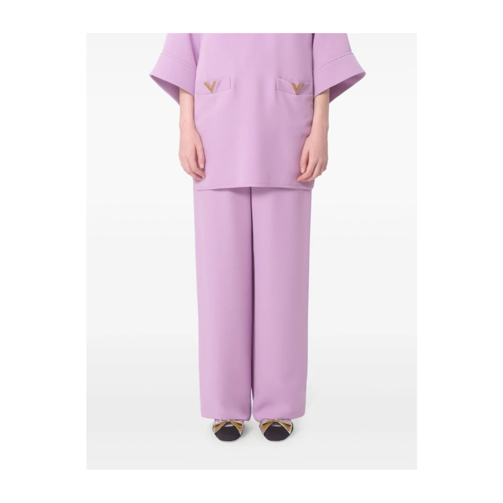Upgrade je garderobe met deze Valentino straight broek in zachte wisteria kleur. Voorzien van een elastische hoge taille, zijzakken en rechte pijpen voor een reguliere pasvorm. Gemaakt van 100% zijde in Itali