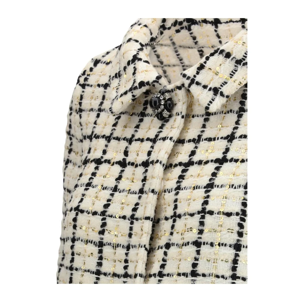 Upgrade je stijl met deze Valentino tweed jas. Versierd met pailletten en een klassieke kraag, met een juweelknoopsluiting en een chique ruitpatroon