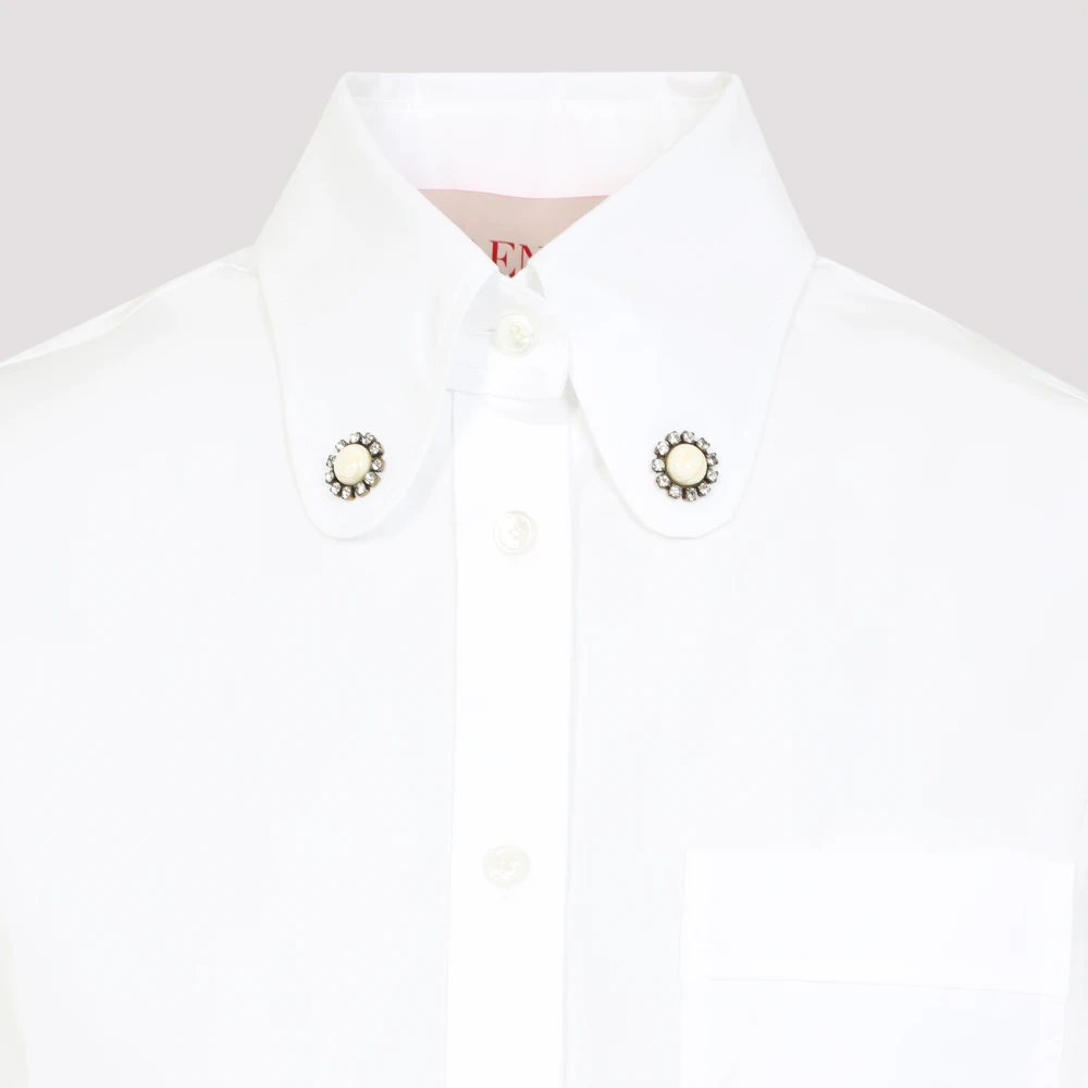 Upgrade je garderobe met deze Valentino blouse voor vrouwen met een klassieke kraag met juweeldetail, knoopsluiting aan de voorkant en een applicatiezak