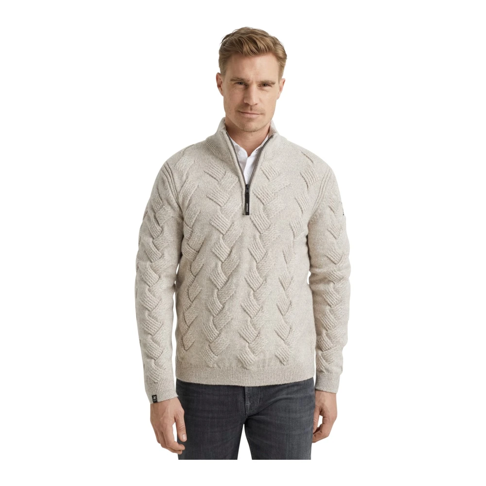 Sweater Vanguard Trui Half Zip Structuur Wolblend Ecru Beige
