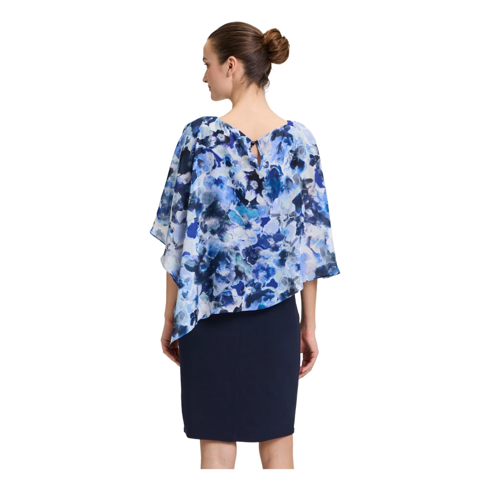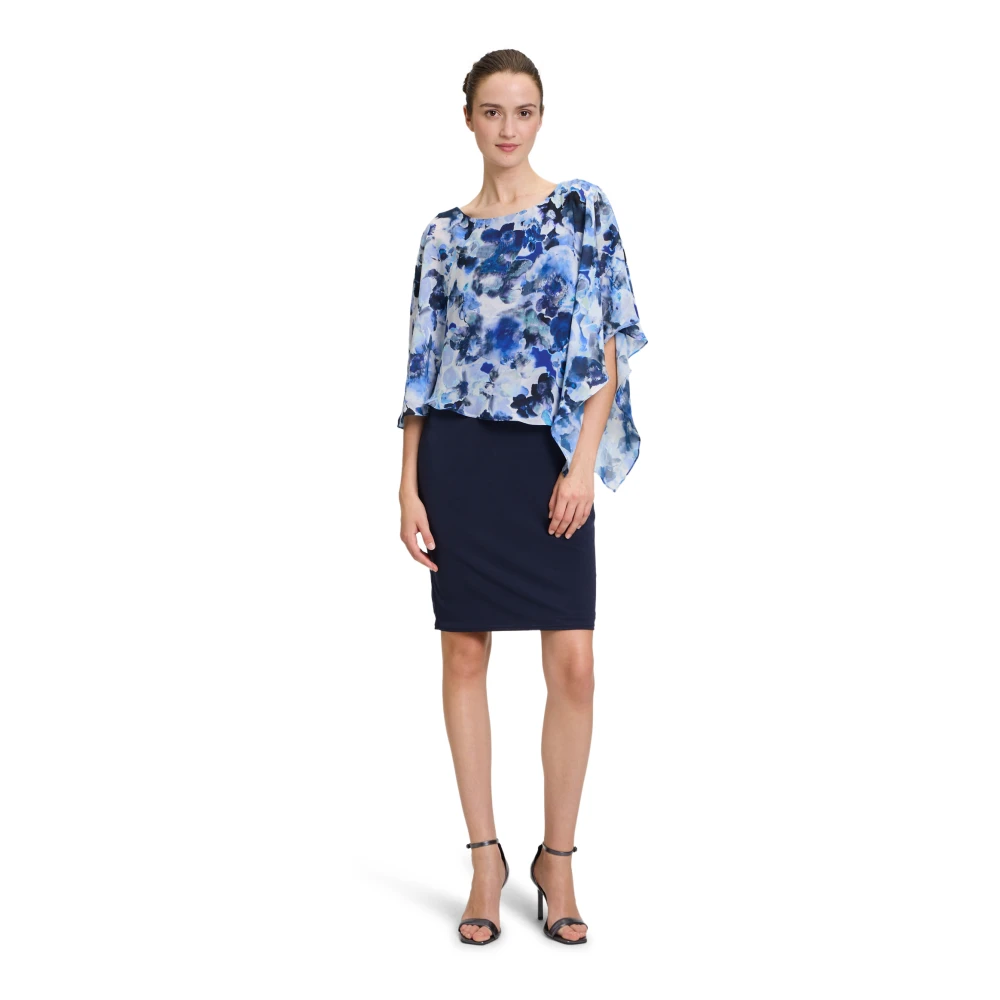 Cocktailjurk van Vera Mont. Chiffon. Los model. Knielang. Ronde hals. Dubbele-laagjeslook. Borstomvang bij maat 36: 43 cm