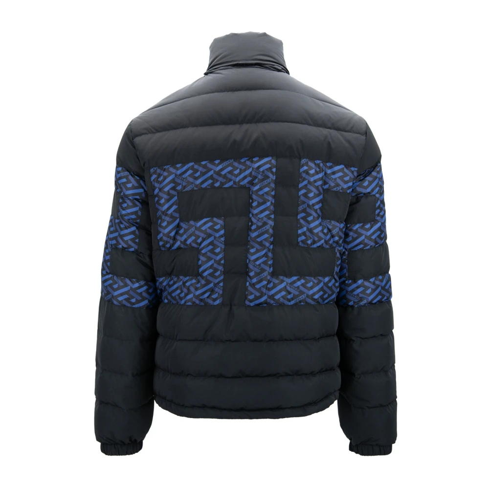 Blijf warm en stijlvol deze winter met deze heren donsjas van Versace. Voorzien van een capuchon met klittenbandsluiting, zijzakken met drukknoop en iconisch blauw Grieks detail met 'Versace' logo. Gemaakt van 100% polyester met ganzendonsvulling, is deze jas zowel comfortabel als modieus. Verkrijgbaar in verschillende maten voor de perfecte pasvorm.