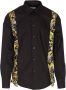 Zwarte shirt van Versace Jeans Couture. Gemaakt van katoen, deze stijl toont elementen met het handtekening Logo Couture patroon van het merk in wit en goudkleurig, knoopsluitingen en lange mouwen met knoopmanchetten