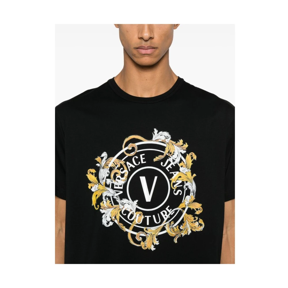 Versace Jeans Couture Zwart Grafisch Print T-shirt met Ronde Hals Black Heren