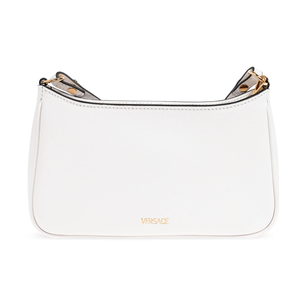 Ontdek de Schoudertas uit de exclusieve VERSACE-collectie, die elegantie en functionaliteit combineert. Dit prachtige accessoire trekt de aandacht met zijn Compacte, Rechthoekige Vorm en delicate, crmekleurige tint, vervaardigd van het hoogwaardigste leer. Ontwerpdetails zijn onder andere een gouden Medusa-logo en een subtiel