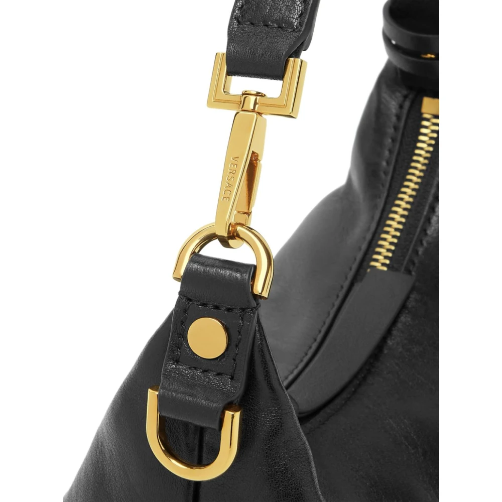 Versace zwarte leren Sac Hobo handtas voor vrouwen, gemaakt van lamsvacht met Medusa metalen afwerkingen. Dit stuk maakt deel uit van de Lente-Zomer 2025 collectie