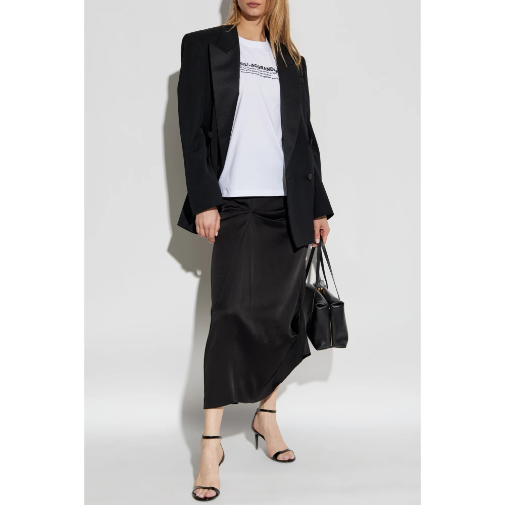 Introductie van het Bedrukte T-Shirt van Victoria Beckham - het toonbeeld van elegantie in een casual ontwerp. Dit klassieke model met korte mouwen en een ronde hals is gemaakt van de hoogste kwaliteit 100% Katoen, wat zorgt voor uitzonderlijk comfort en ademend vermogen. Op de voorkant van het T-shirt vind je een trendy, gedurfd print met de zwarte inscriptie 'Zelfvergroting' en een subtiele tekst eronder. Een extra accent is een klein rood print met de letters 'Ab' aan de achterkant van de nek, wat karakter toevoegt aan het geheel. Waarom ZOU JE DIT Product Kopen? * Gemaakt van katoen, met zorg voor het milieu. * Unieke print die een moderne stijl benadrukt. * Ontworpen door een gerenommeerde ontwerper, wiens collecties worden gewaardeerd door volwassen vrouwen. * Perfect voor dagelijkse styling, waarbij elegantie wordt gecombineerd met draagcomfort. Model's Metingen Hoogte: 176 cm Buste: 85 cm Taille: 60 cm Heupen: 89 cm Model draagt maat: S