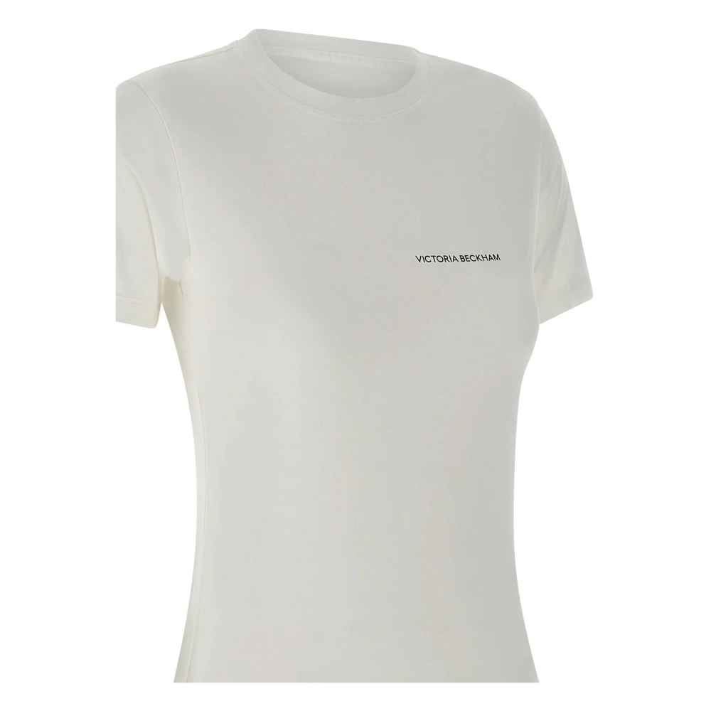 Upgrade je casual look met deze Victoria Beckham katoenen T-shirt in het wit. Met korte mouwen, ronde hals en een contrasterend kleurig logo op de borst, biedt dit shirt een regular fit voor een stijlvolle en comfortabele uitstraling.