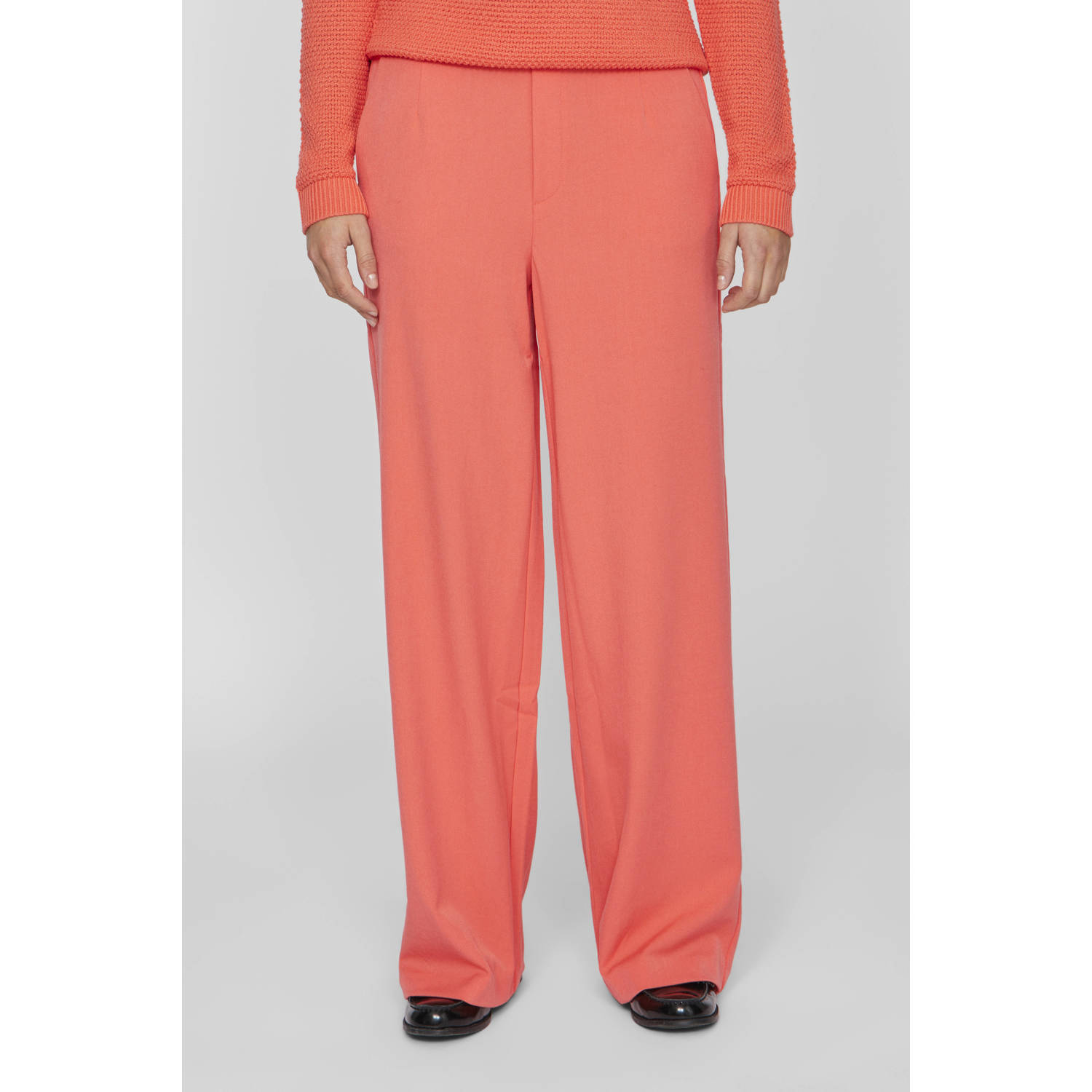 Met VILA draag je een casual broek met wijde pijpen en een hoge taille. Deze broek is gemaakt van polyester, viscose en elastaan, heeft een elastische tailleband, riemlussen, achterzakken en zijzakken.